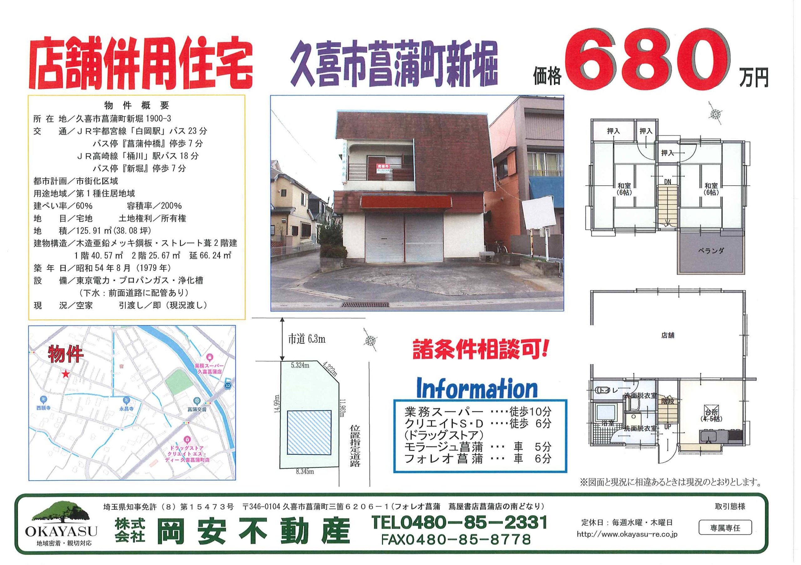 菖蒲町新堀 店舗併用住宅 125.91㎡(38.08坪) 2025.12.16 売買一覧 価格 680万円 都市計画 市街化区域 用途地域 第一種住居地域 土地面積 125.91㎡(38.08坪) 外観 1階店舗 1階店舗内 1階店舗 キッチン 間取図 資料 交通 ◎JR宇都宮線 白岡駅 バス23分 バス停『菖蒲仲橋』徒歩7分◎JR高崎線 桶川駅 バス18分 『新堀』バス停 停歩7分 所在地 埼玉県久喜市菖蒲町新堀1900-3 地図 建ぺい率 地 目 60% 宅地 容積率 引渡し 200% 即(現況渡し) 物件の設備・建物情報 設備 プロパン、電気、公営水道、浄化槽(前面道路に配管あり) 周辺情報 学 区 業務スーパー 徒歩5分/クリエイト(ドラッグストア) 徒歩6分/モラージュ菖蒲 車5分/フォレオ菖蒲 車6分 菖蒲小学校/菖蒲中学校 コメント: 0 加須市鴻茎 2DK ベルコーポ 加須市下種足 売地 1367.64㎡(413.71坪) 関連記事 ※建築条件付き 菖蒲町菖蒲 売地 55.01坪 久喜市菖蒲町菖蒲 売地 148.93坪 菖蒲町菖蒲 売地(古家あり) 169.75㎡(51.34坪) ※諸条件相談可 中古住宅 茨城県古河市中田 4DK 久喜市菖蒲町新堀 売地 198㎡(59.89坪) 久喜市除堀 売地(古家あり) 248.04㎡(75.03坪) 久喜市菖蒲 売地 172.20㎡(52.09坪) オーナーチェンジ物件!!! 菖蒲町三箇 中古住宅 コメント コメント ( 0 ) トラックバック ( 0 ) この記事へのコメントはありません。 この記事へのトラックバックはありません。 トラックバック URL 返信をキャンセルする。 名前 E-MAIL ※ 公開されません URL