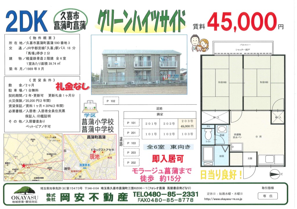 菖蒲町菖蒲 2DK グリーンハイツサイド